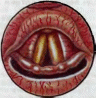 чальнойформытуберкулеза,когдаnриларингоскопииопределяетсяодностороннеепоражениегортани;крометого,туберкулезгортани.какправило,сопровождаетсяспецифическимпоражениемлегких.Сифилитическийпроцесс(стадияэритемы)распространяетсявсегданаслизистуюоболоч-