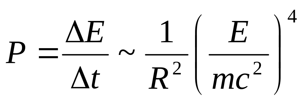 где H – величина напряженности магнитного поля, а q – заряд частицы. Поэтому максимально достижимая энергия частицы пропорциональна радиусу траектории и величине магнитного поля. Сократить размеры установки можно, увеличивая величину поля, а она ограничена эффектом насыщения металла (обычно, железа), используемого в качестве материала сердечника электромагнита. В самых современных ускорителях, в этой связи, используются электромагниты с катушкой из сверхпроводящего материала, работающие при температуре жидкого гелия. Синхротроны используют как для ускорения тяжелых заряженных частиц (протонов, ионов), так и для ускорения электронов. Однако в случае электронов при высоких энергиях становятся существенными потери ими энергии на излучение (называемое синхротронным) при криволинейном движении по орбите. Мощность синхротронного излучения Р для релятивистской частицы следующим образом зависит от её массы m энергии Е и радиуса траектории R: