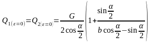 Q1=Q2=406,25/(2*cos40)*(1+sin40/bcos40-sin40)=4290 кгс