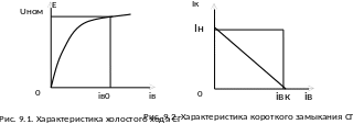 1. Характеристика холостого хода (рис.9.1). Зависимость напряжения генератора от тока возбуждения при постоянной частоте вращения (U = E0 = f (iв) при n = const).