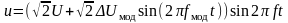 Амплитудная низкочастотная модуляция напряжения – это процесс периодического изменения напряжения относительно его среднего (немодулированного) значения, возникающий как следствие собственных колебательных процессов в СЭЭС и который с определенными допущениями можно представить: