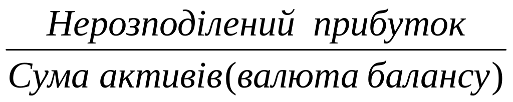 де Х1 – відношення оборотних активів до загальної вартості усіх активів підприємства; Х2 – відношення суми прибутку (до сплати податків та відсотків) до загальної вартості усіх активів підприємства; Х3 – відношення суми прибутку (до сплати податків) до короткострокової заборгованості підприємства; Х4 – відношення обсягу продажу підприємства до загальної вартості всіх його активів (валюти балансу).