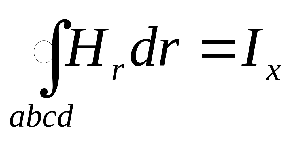 Применив теорему Стокса, найдем, что циркуляция магнитного поля по контуру abcd, охватывающему источник, равна силе полного тока проводимости в направлении оси Х (рис. 4.1).