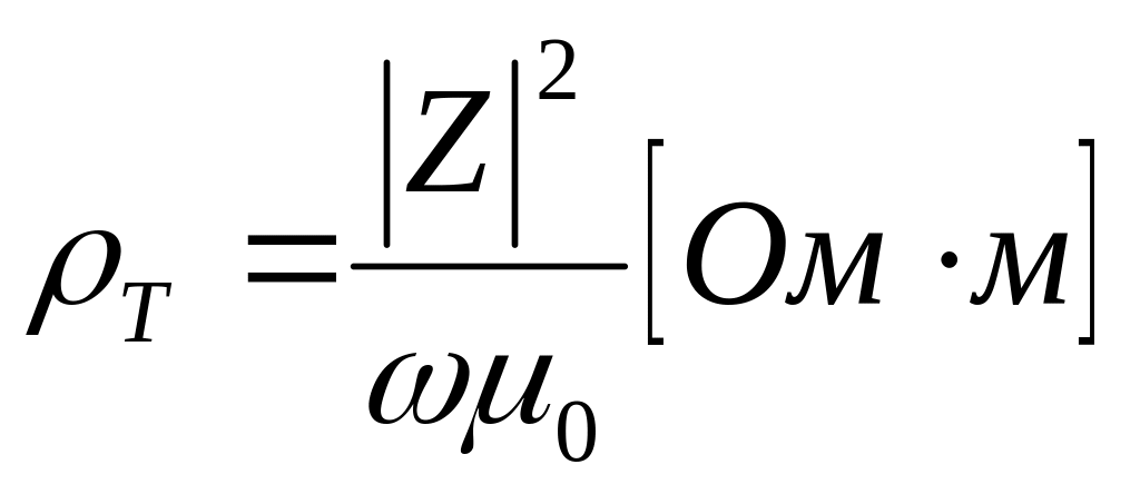 МТ-АМТ поле, как было показано выше, изменяется в широком диапазоне частот (от 10-5 до 104 Гц). После проведения соответствующих процедур фильтрации это позволяет выполнять частотное индукционное зондирование, которое принято называть магнитотеллурическим зондированием (МТЗ).Импеданс является комплексным числом, поскольку электрические и магнитные компоненты поля сдвинуты между собой по фазе. Модуль импеданса над однородным полупространством, как это будет показано ниже, в разделе имеет вид:
