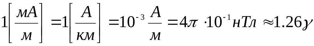 Приведенная выше формула для вычисления кажущегося удельного электрического сопротивления (4.7) и само определение импеданса в единицах скорости находятся в противоречии с традициями магнитотеллурики, заложенными А.Н. Тихоновым и Л. Каньяром. Поэтому, по рекомендации М. Н. Бердичевского и В.И. Дмитриева, принято сохранить прежнее значение импеданса как комплексного сопротивления, определяемого отношением ортогональных компонент напряженности электрического поля и магнитного поля . Но при этом из обращения изъята внесистемная единица «гамма». Вместо нее принято использовать дольную единицу из системы СИ, близкую по величине к единице гамма. В качестве такой величины принята одна тысячная доля ампера на метр,