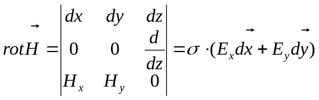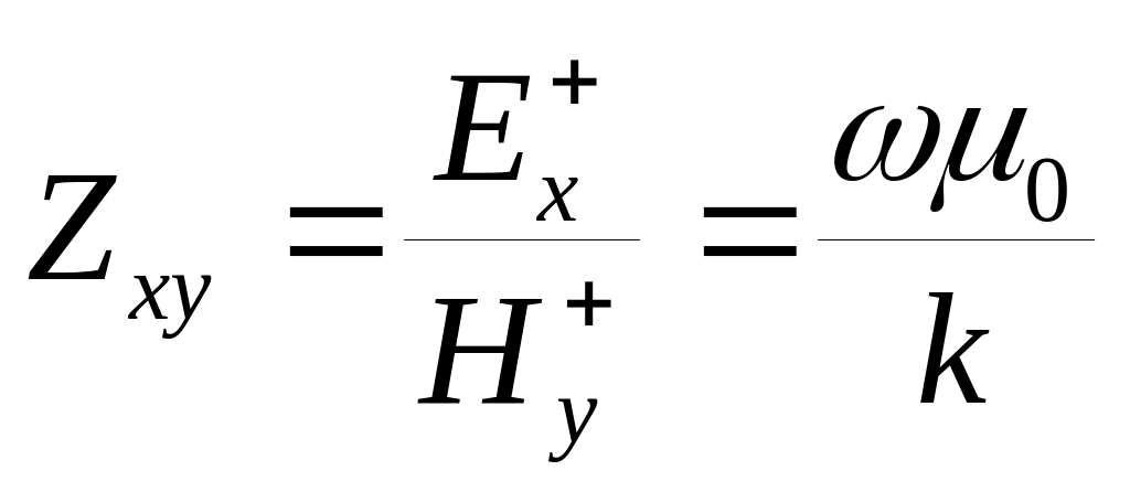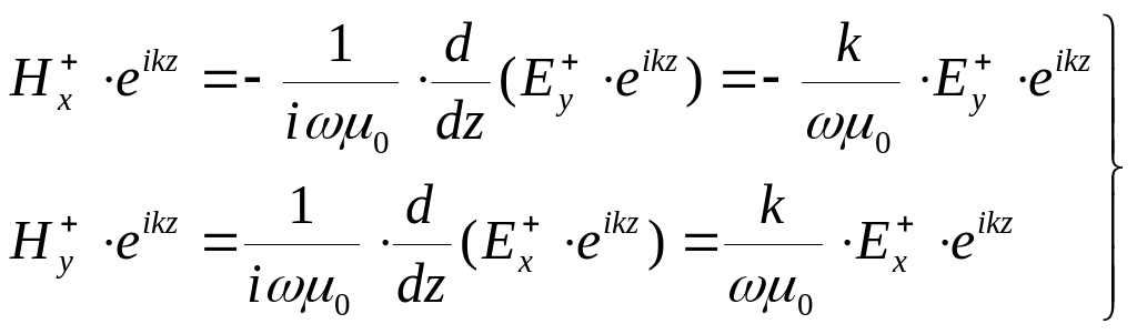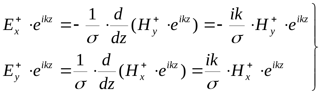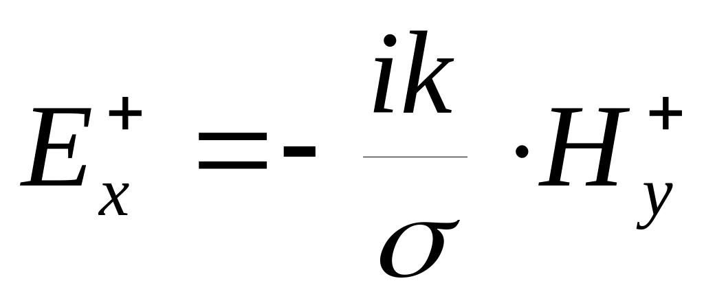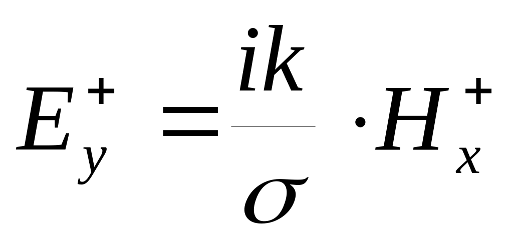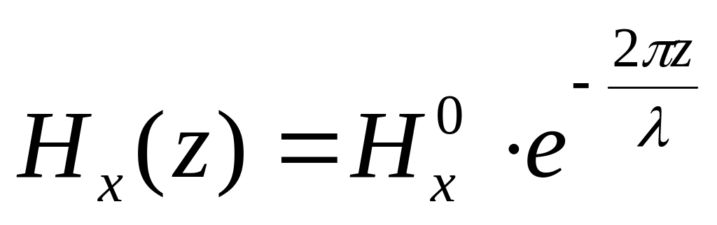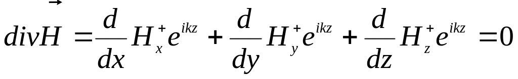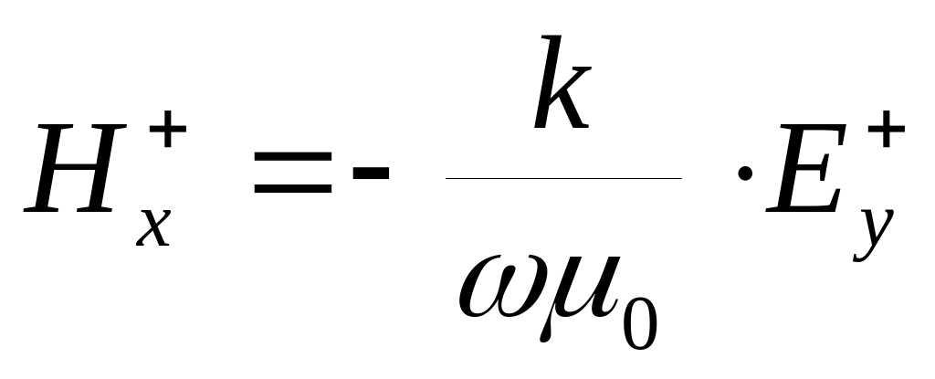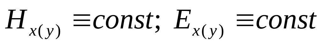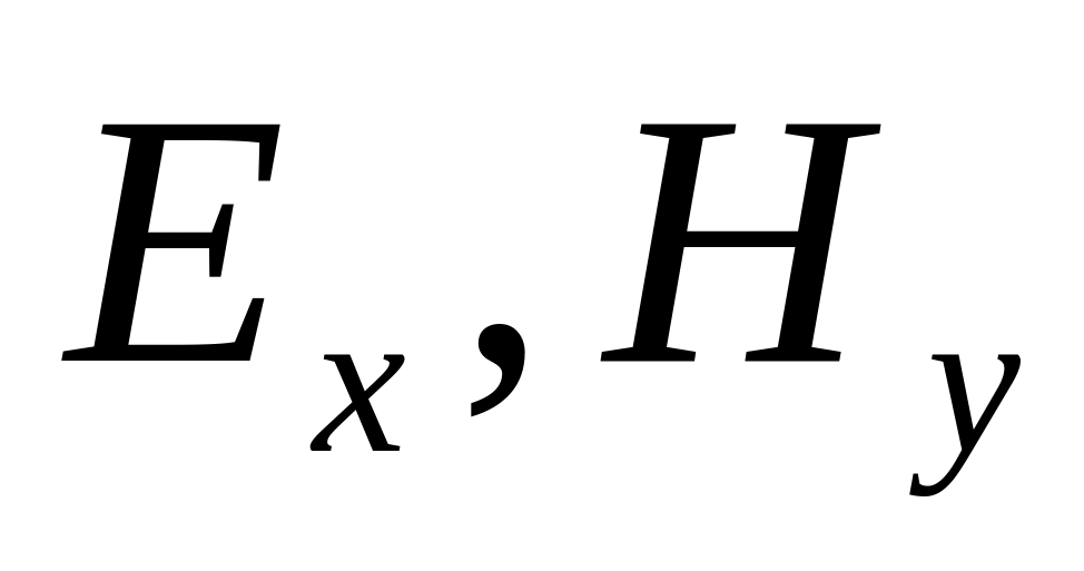 Это означает, что в плоско поляризованной вертикально падающей волне существуют только горизонтальные компоненты поля Ех, Еу и Нх, Ну.