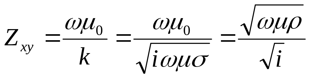 Полученное решение описывает поле в однородном полупространстве. Положив равными нулю коэффициенты в уравнениях (6.6) и (6.7), мы тем самым приняли, что поле распространяется только сверху вниз и что в нижнем полупространстве отсутствуют какие-либо неоднородности (слои), которые могли бы привести к появлению отраженных волн, распространяющихся снизу вверх. Полное решение уравнений (6.6) и (6.7) будет рассмотрено ниже, в разделе 7 при рассмотрении магнитотеллурического поля над горизонтально-слоистым полупространством.
