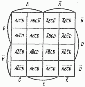 Рис. 4.13. Диаграмма Вейча для функции четырех переменных
