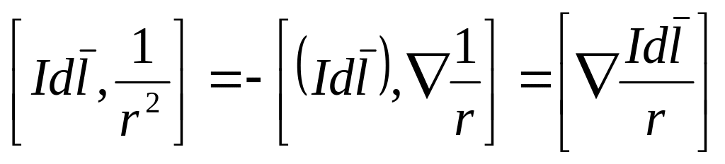 Такое преобразование сделать можно, так как оператор является символом дифференцирования по координатам точки наблюдения, то есть по r, тогда как вектор Idl для является величиной постоянной. Теперь