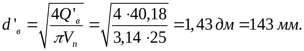 та діаметрів при нормальному режимі та і в режимі пожежогасіння і ці дані заносимо в табл. 6. Якщо в таблиці відсутнє значення витрати, то діаметр визначається за формулою. Так, для ділянки 1-2 в таблиці 1 додатків відсутнє значення витрати 50 л/с. Отже, діаметр ділянки 1-2 в режимі "пожежа" визначимо з формули: