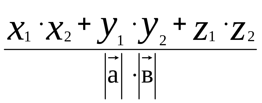 Теперь, исходя из определения скалярного произведения, можно записать выражение косинуса угла между двумя векторами через их координаты: