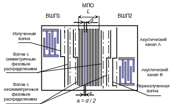 возбуждающий (ВШП)1) и приемный (ВШП)2) преобразователи эквивалентны.