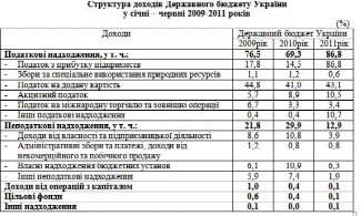 Таблиця 1. Структура доходів державного бюджету України.