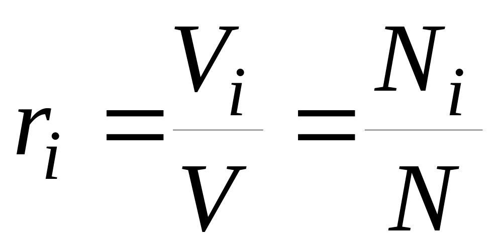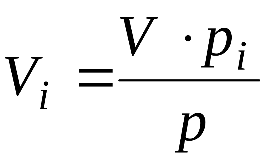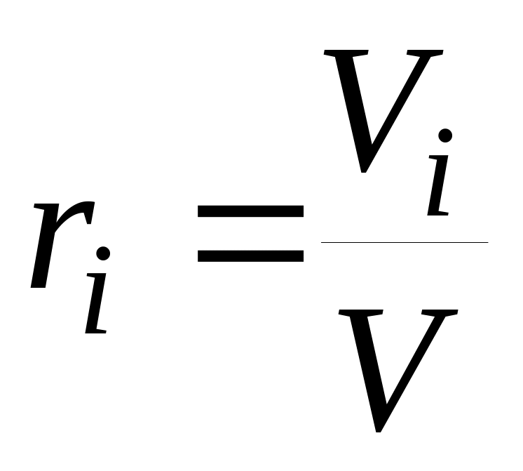 Объемной долей называется отношения приведенного объема компонента газа Vi к полному объему смеси V.