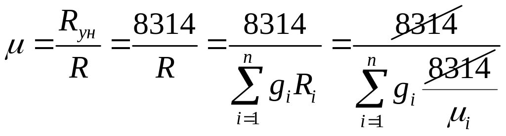 где g1, g2 и т.д. – массовые доли идеальных газов, составляющих смесь.