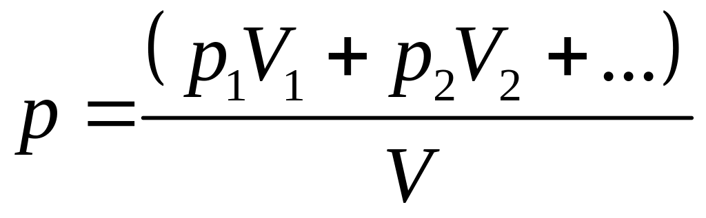 Из полученного уравнения и уравнения состояния идеальных газов можно получить давление смеси газов одинаковой атомности