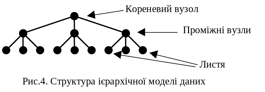 Ієрархічна модель припускає організацію даних у вигляді дерева (графа без циклів):