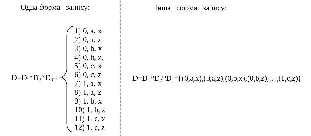 Наприклад: D1*D2*D3 – декартовий добуток доменів D1, D2 і D3.