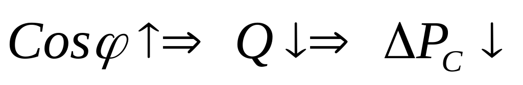 Потери в сети от реактивной мощности снижаются, от активной - возрастают.