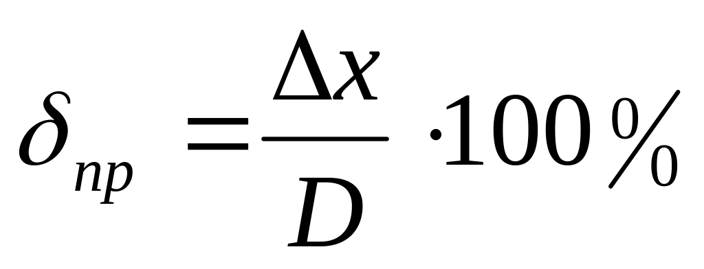 Для прибора с нулевой отметкой на краю диапазона измерений D - это конечный предел измерения. А для прибора с двусторонней шкалой по обе стороны от 0 D - это арифметическая сумма конечных пределов измерения.