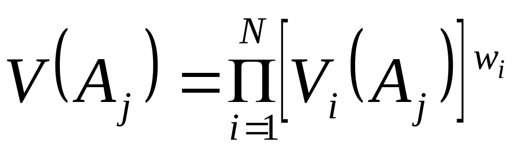 на другому рівні ієрархічної схеми.Визначення цінності кожної з альтернатив за допомогою мультиплікативної формули: