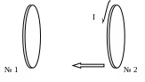 Вказати напрям індукційного струму в 1-му контурі, якщо 2-й контур переміщуюють, як показано на рисунку. Дати необхідні пояснення.