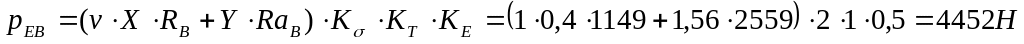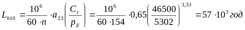 де V =1– коефіцієнт при обертанні внутрішнього кільця підшипника.