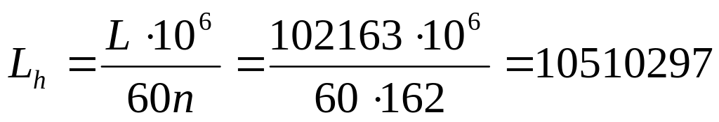 Расчетная долговечность, млн. об: