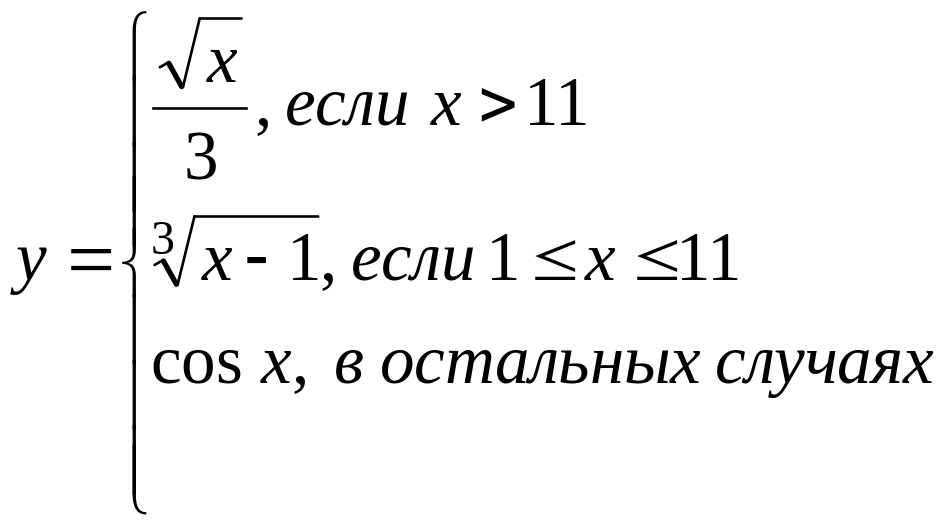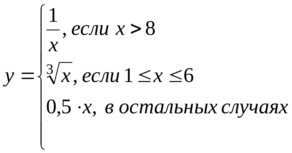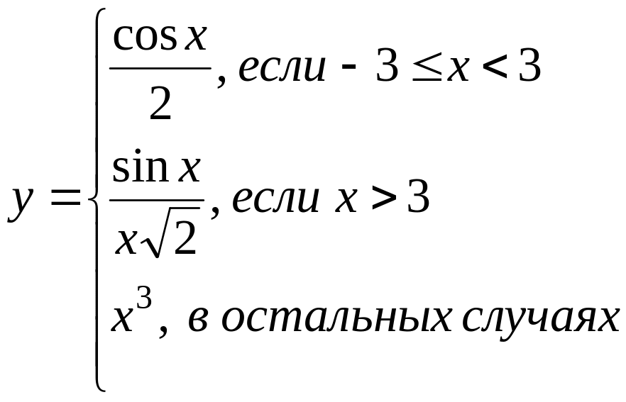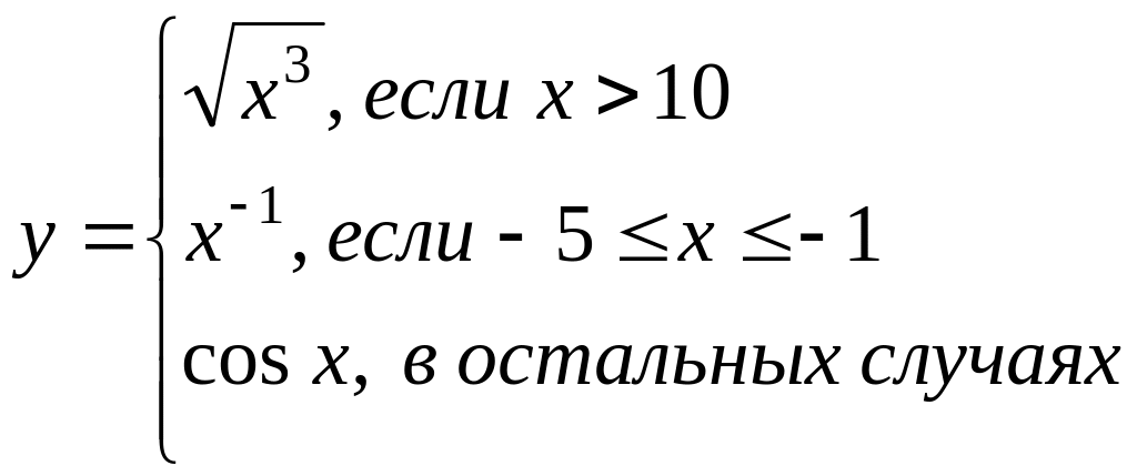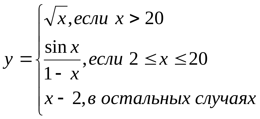 Исходные данные для отладки программы (xнач, xкон, ∆x) выбрать самостоятельно так, чтобы значения функции были вычислены во всех трех интервалах и точках ветвления.