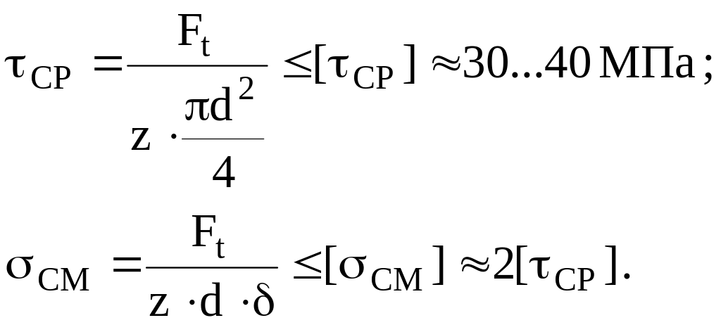 Tf ³ T ; Ff × D/2 ³ Ft × D/2 или Ff ≥ Ft .