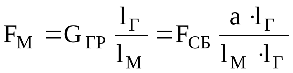 S MA = FP × lP – FСБ × a + FM × a1 = 0 ;