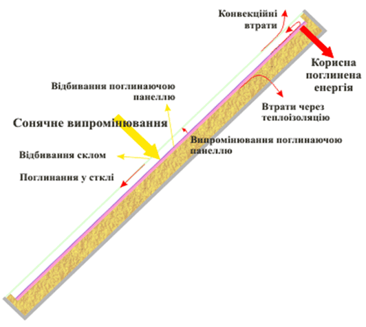 Рисунок 7.3 - Втрати теплової енергії у плоскому сонячному колекторі