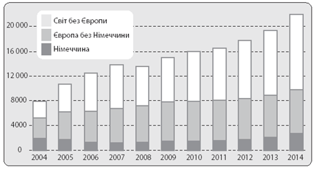 Прогноз річних приростів потужностей світового парку ВЕС впродовж 2004-2014 років