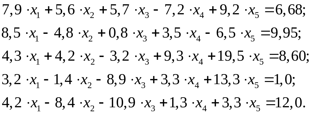Привести решение методом Гаусса «вручную» с пятью значащими цифрами после запятой.