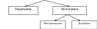 Культурныя – гэта ўсё тое, што было створана чалавекам, а не прыродай. Да матэрыяльных культурных каштоўнасцей адносяць і звычайныя прадметы, якія ствараюцца для патрэб людзей, і творы мастацтва (з улікам мастацкай функцыі). Духоўныя культурныя каштоўнасці – гэта катэгорыі ўяўляемыя: напрыклад, дабрыня, спачуванне, любоў, прыгажосць, усе катэгорыі маральнасці.