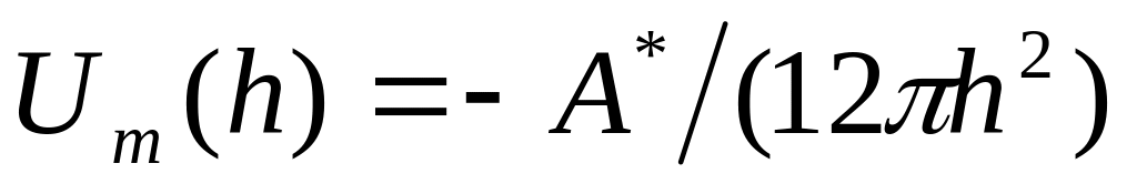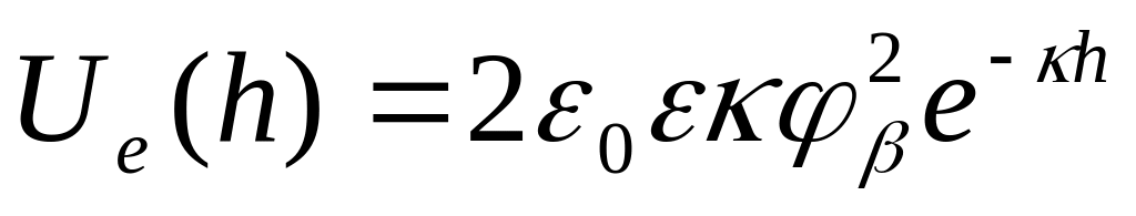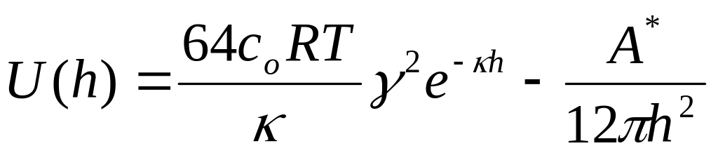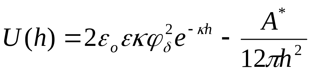где Ue(h) и Um(h) - энергия электростатического отталкивания и молекулярного притяжения соответственно.