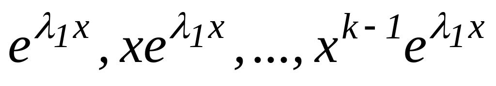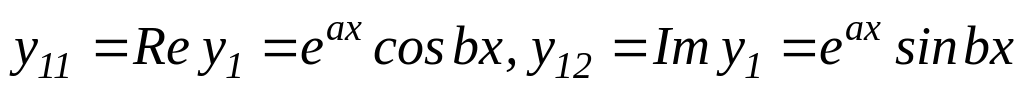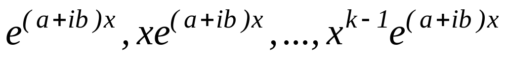 Бұлардың біріншісі, алдыңғымен бірдей; екіншісі, тек таңбасымен өзгеше, яғни (9) және (10) функциялар өзара сызықты тәуелді. Сондықтан, өзара түйіндес комплекс түбір үшін (9) түріндегі екі нақты функция алынады. Осы сияқты, кез келген қос комплексты түбір үшін екі нақты функциялар алынып отырады. Оларға қоса нақты түбірлерге сәйкес қойылатын шешімдерді алсақ, олардың жиыны берілген теңдеудің фундаменталь шешімдер жүйесін құрайды.