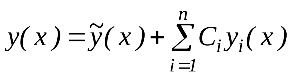 функциясын аламыз. Бұл функция өзінің құрылымы бойынша (1) теңдеудің шешімі. Мұндағы, бірінші қосынды (1) теңдеудің дербес шешімін, екінші қосынды біртекті теңдеудің жалпы шешімін білдіреді. Сонымен, бастапқы айтылған қағидаға қайта келдік: біртексіз теңдеудің жалпы шешімі осы теңдеудің бір дербес шешімі мен оның сәйкес біртектісінің жалпы шешімінің қосындысынан тұрады.