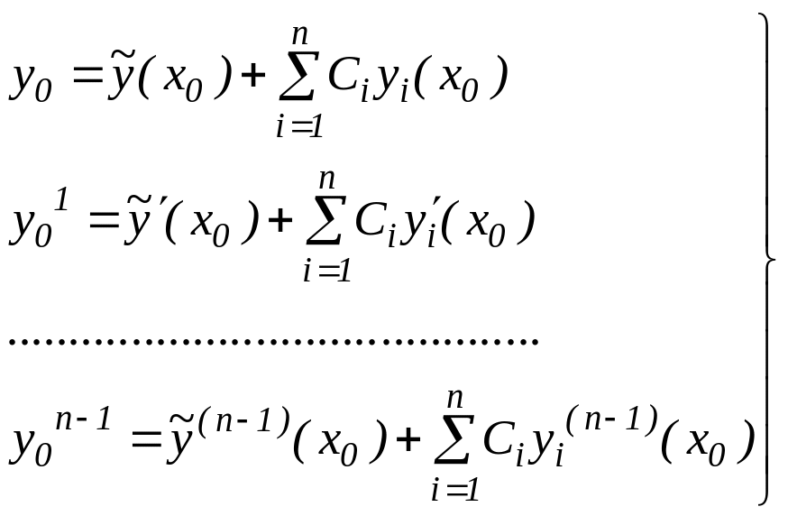 - •10. Жоғарғы ретті сызықтық дифференциалдық теңдеулер үшін Коши есебінің қойылуы, ол есептің жалғыз ғана шешімі бар болуы туралы теоремалар.