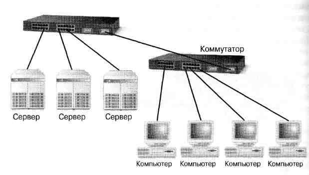 Последний вид топологии – коммутатор. Коммутатор — это многопортовое, активное сетевое устройство. Коммутатор «запоминает» аппаратные (или MAC) адреса подключенных к нему устройств и создает временные пути от отправителя к получателю, по которым и передаются данные. Каждый порт и устройство, которое к нему подключено, имеет свою собственную пропускную способность.
