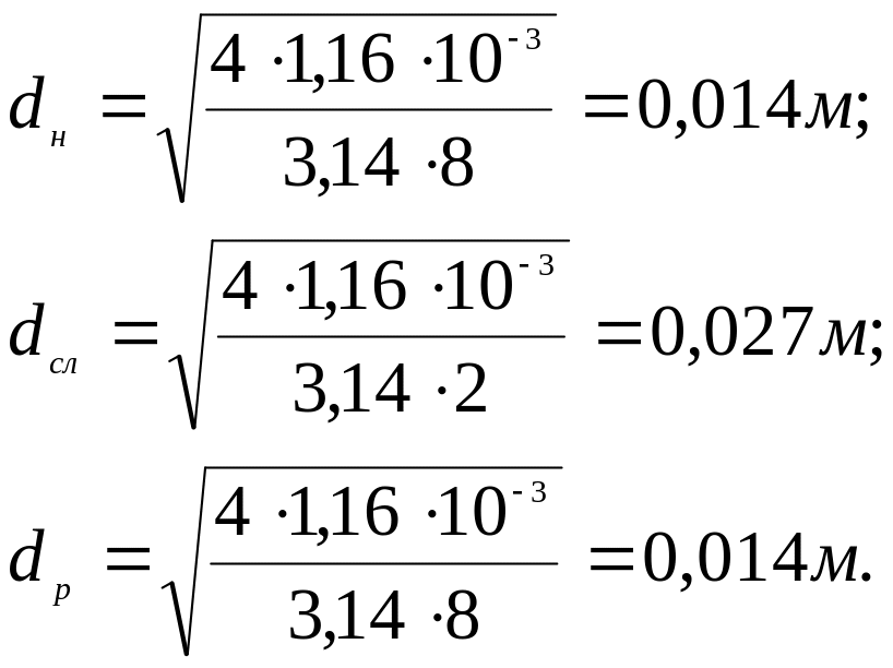 Полученные значения округляем до ближайшего стандартного значения (прил.17 [1]):dн= 0,012м; dсл= 0,032м; dр= 0,012м.