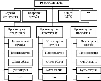 Продуктовые структуры построены по принципу объединения подразделений, занятых одним видом товаров или услуг (рис. 3).