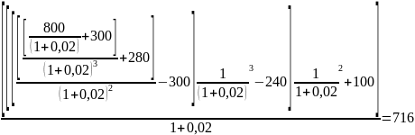 Мысал: Біз жыл басында х ақша салдық, сосын оны бірінші айда 100тг, үшінші айда 240тг, алтыншы айда 300тг-мен толықтырдық. Бірақ сегізінші айда 280тг, он бірінші айда 300тг алған едік. Сөйтіп жыл соңында шотымыздан 800тг алдық, бастапқыда қанша ақша салдық?