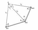 -прямая угловая засечка, она выполняется не менее чем с трех пунктов, углы при выносимом межевом знаке (угол 1 и 2) должны быть не 30 и не 150. Длины сторон S1, S2, S3 до 1000 м.