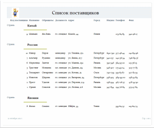 Задание1. С помощью Мастера отчётов создайте отчёт на основе таблицы Поставщики по образцу: