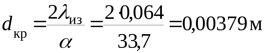 Только при dиз=dкр тепловые потери вновь станут такими же, как и для неизолированного трубопровода.