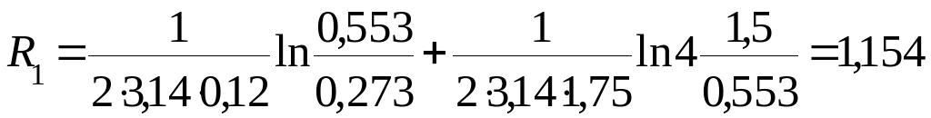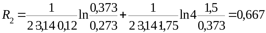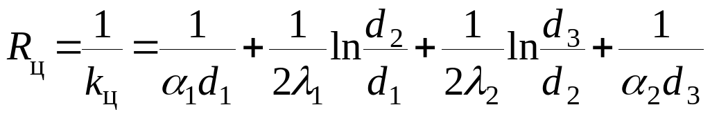 В уравнении общего термического сопротивления двухслойной цилиндрической стенки