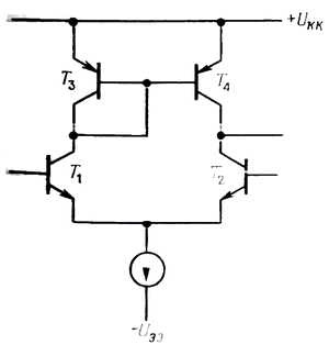 Рис. 2.70. Увеличение КОСС дифференциального усилителя с помощью источника тока.