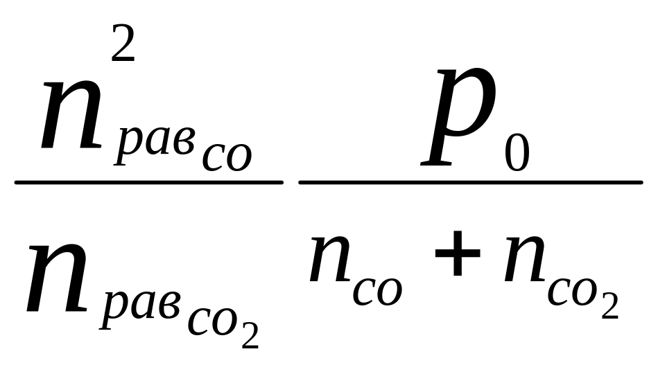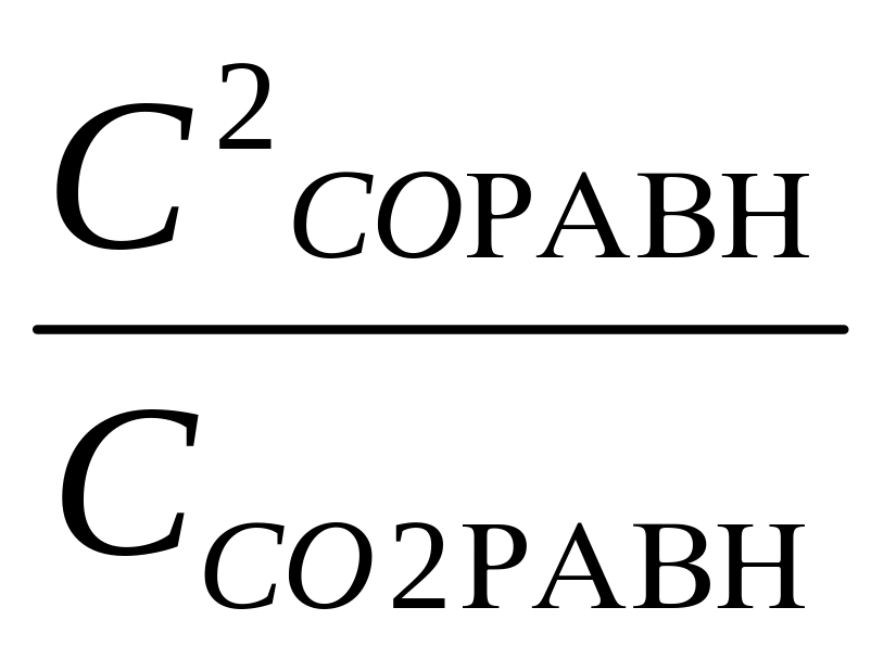 где ∆n = 2-1=1 и Σni равн = n СО 2 равн + n СО равн