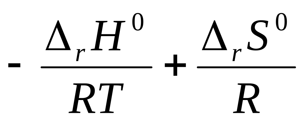 ∆rG0Т= -RTlnКр для реакций в газовых системах и ∆rG0Т= -RTlnКс для реакций в конденсированных системах.